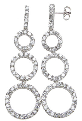 These are one of a kind cubic zirconium silver earrings. The high polish rhodium finish gives these silver earrings the Platinum look. It is almost impossible for an untrained eye to distinguish the difference between real platinum and rhodium finish silver jewelry. The cutting edge finish makes this silver jewelry stand out above and beyond normal silver earrings. The stones are firry and filled with sparkle. This silver earring is of the finest quality, and the workmanship is flawless. The difference is truly remarkable. This is the same finish applied to fine platinum and white gold jewelry. This revolutionary finish gives the silver jewelry longer durability against tarnish. This is one of the latest designs in Fashion jewelry, and what every woman is going head over heels for.