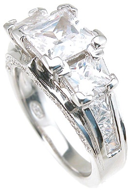 This is a one of a kind cubic zirconium silver ring. The high polish rhodium finish gives this silver ring the platinum look. It is almost impossible for an untrained eye to distinguish the difference between real platinum and rhodium finish silver jewelry. The cutting edge finish makes this silver jewelry stand out above and beyond normal silver ring. The stones are firry and filled with sparkle. This silver ring is of the finest quality, and the workmanship is flawless. The difference is truly remarkable. This is the same finish applied to fine platinum and white gold jewelry. This revolutionary finish gives the silver jewelry longer durability against tarnish. This is one of the latest designs, and what everyone is going head over heels for.