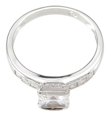 This is a one of a kind cubic zirconium silver ring. The high polish rhodium finish gives this sterling silver ring the platinum look. It is almost impossible for an untrained eye to distinguish the difference between real platinum and rhodium finish silver jewelry. The cutting edge finish makes this silver jewelry stand out above and beyond normal silver ring. The stones are firry and filled with sparkle. This silver ring is of the finest quality, and the workmanship is flawless. The difference is truly remarkable. This is the same finish applied to fine platinum and white gold jewelry. This revolutionary finish gives the silver jewelry longer durability against tarnish. Silver is the newly weds choice of ring. The advantages of rhodium finish silver jewelry is far too many to list in full, but here are few. Silver also has similar hypoallergenic properties as gold. Therefore, most people will not have allergic reactions. They are great for honeymooning, vacationing or while traveling. The replacement cost offers piece of mind and versatility in personal selection to the individual.