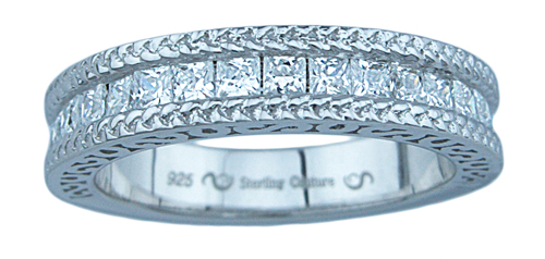 The infamous Sterling Couture wedding sets have set a precedent for many sterling weddings. The wedding sets are crafted by master jewelers for superior quality. As a leader in the market place, Sterling Couture initiates the trends and upholds the latest fashion in bridal jewelry. Individual designs are timeless and elegant. Valentine is adorned with princess stones and accented with double braided motif. As its name entails, it represents passion and love.