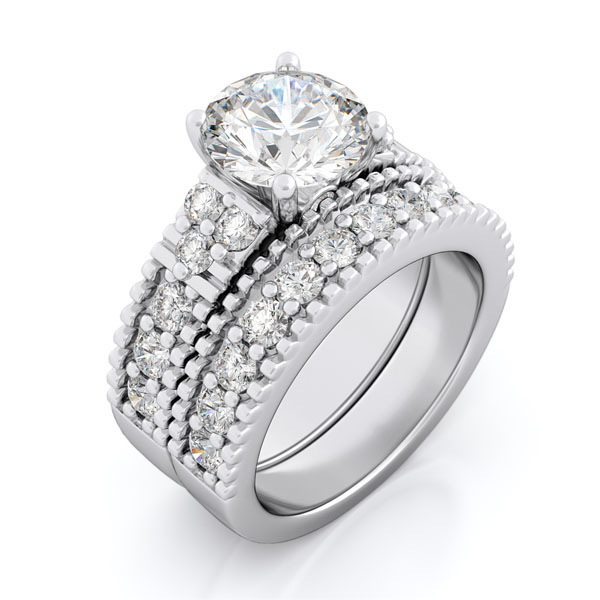 This is a one of a kind wholesale 925 sterling silver wedding ring set. The rhodium finish gives this wholesale sterling silver wedding ring set the platinum look. It is almost impossible for an untrained eye to distinguish the difference between white gold and rhodium finish silver jewelry. The cutting edge finish makes this wholesale silver jewelry stand out above and beyond normal silver jewelry. The stones are firry and filled with sparkle. This wholesale 925 sterling silver wedding ring set is of the finest quality, and the workmanship is flawless. The difference is truly remarkable. This is the same finish applied to white gold jewelry. This revolutionary finish gives the wholesale silver jewelry longer durability against tarnish. Silver also has similar hypoallergenic properties as gold. Therefore, most people will not have allergic reactions. Sterling weddings are the choice of the new generation. 925 sterling silver wedding ring sets are great for weddings, honeymooning, vacationing or while traveling. |