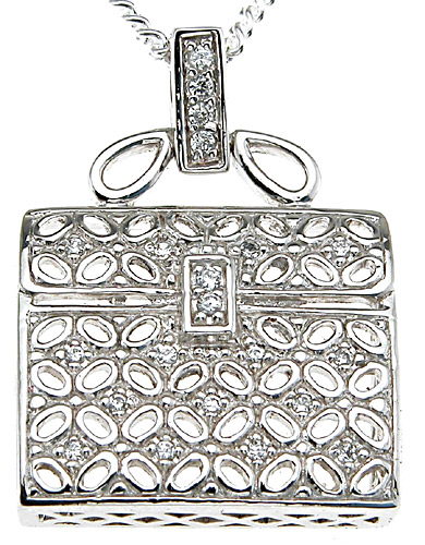 This is a one of a kind cubic zirconium silver pendant. The high polish rhodium finish gives this silver pendant the Platinum look. It is almost impossible for an untrained eye to distinguish the difference between real platinum and rhodium finish silver jewelry. The cutting edge finish makes this silver jewelry stand out above and beyond normal Silver pendant. The stones are firry and filled with sparkle. This silver pendant is of the finest quality, and the workmanship is flawless. The difference is truly remarkable. This is the same finish applied to fine platinum and white gold jewelry. This revolutionary finish gives the silver jewelry longer durability against tarnish. This is one of the latest designs in Fashion jewelry, and what everyone is going head over heels for.