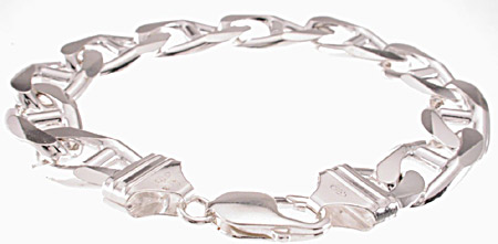 This is a top quality Italian sterling silver Mariner 350 bracelet. Italian jewelry is famous for its design, finesse and finish. This is especially true with sterling silver chains. Italian sterling silver chains are undoubtedly the most admired silver chains in the world. This high polish Italian silver bracelet was made in Italy and it bears the Italy stamp. The design is classic and everlasting. Italian sterling silver jewelry is of the finest quality, and the workmanship is flawless.