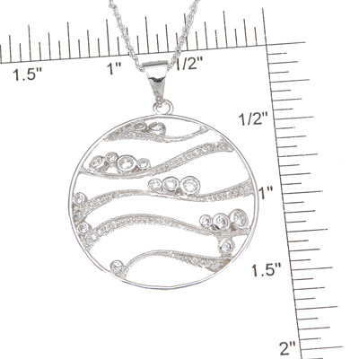 This is a one of a kind cubic zirconium silver pendant. The high polish rhodium finish gives this silver pendant the platinum look. It is almost impossible for an untrained eye to distinguish the difference between real platinum and rhodium finish silver jewelry. The cutting edge finish makes this silver jewelry stand out above and beyond normal Silver pendant. The stones are firry and filled with sparkle. This silver pendant is of the finest quality, and the workmanship is flawless. The difference is truly remarkable. This is the same finish applied to fine platinum and white gold jewelry. This revolutionary finish gives the silver jewelry longer durability against tarnish. This is one of the latest designs in Fashion jewelry, and what everyone is going head over heels for. |